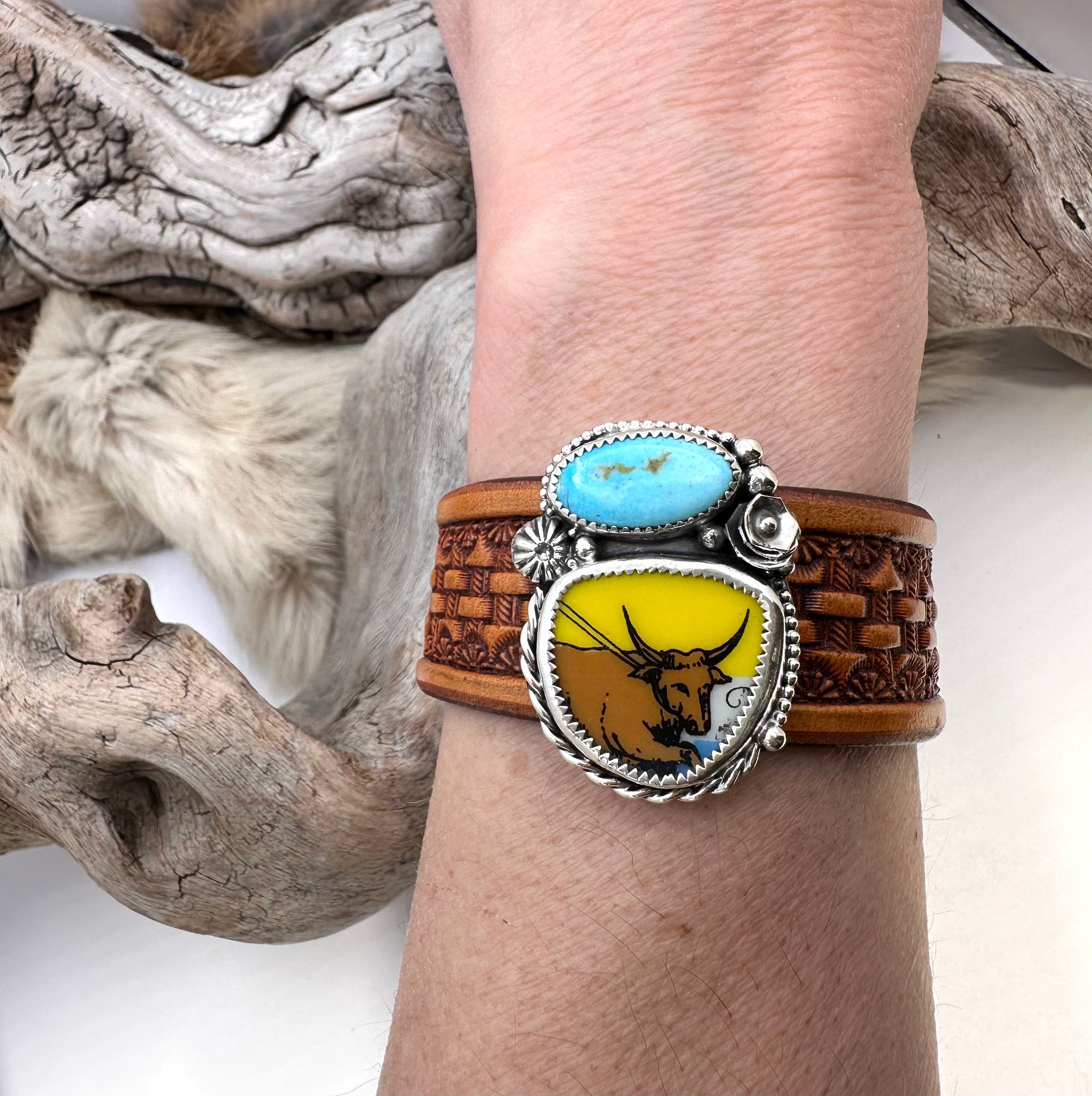 - Leather cuffs are basket-stamped by Plush Pony Leather